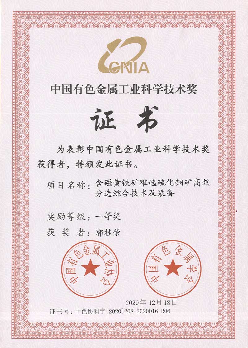 中国有色金属工业科学技术奖个人一等奖-郭桂荣